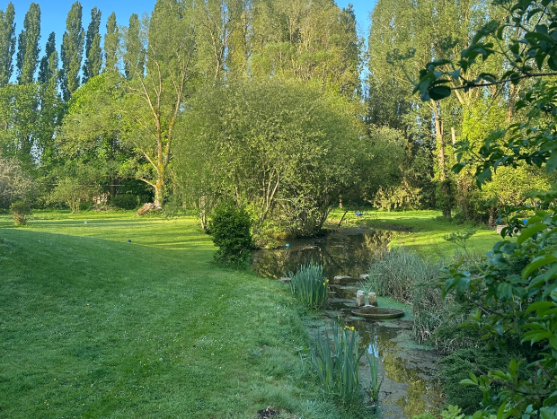 Une rivière bucolique traverse le parc.