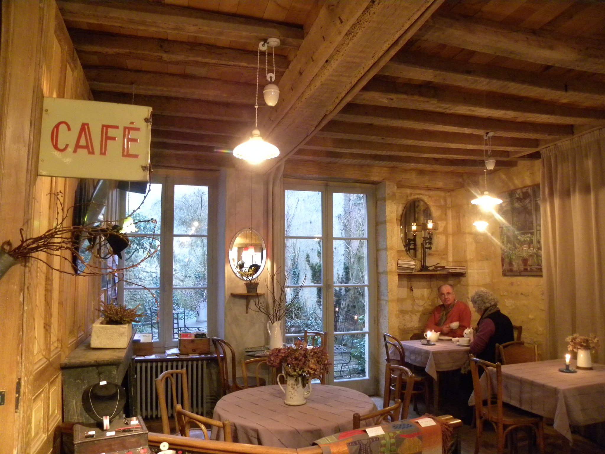 Cette ravissante boutique vous propose un coin buvette (jus de fruits et café), ou vous pourrez passer un agréable moment de détente. Profitez de sa terrasse typique, dès les beaux jours, située dans la cour intérieure, au pied des remparts de Bellême. Expositions temporaires, vente de créations artisanales et d'objets d'art.